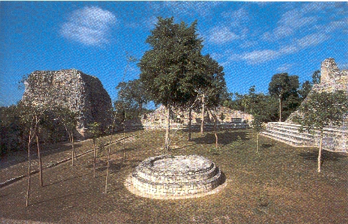 southeast and with Xpujil, seven kilometers east. The Mayans built their