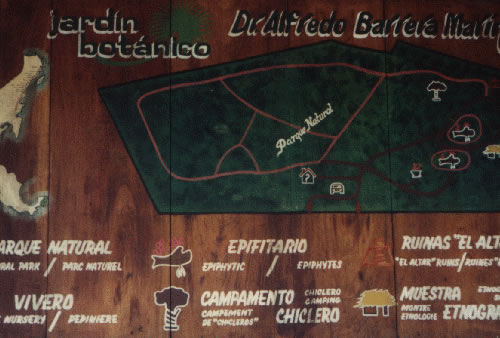 The garden exists of 60 hectares of natural vegetation, one of greatest of the country. In the garden two types of vegetation can be seen, the medium subperenifolia forest and mangrove. To count on this vegetation in the garden is truly important, since in the two recent decades a large part of grounds of the state, that were covered by the forests, has diminished considerably due to natural phenomena like hurricanes and fires and by the direct action of mankind. Being a natural garden, it also it acts like a refuge for the wild fauna; for that reason it is common to observe iguanas, abundant migratory and resident birds, and troops of spider monkeys. The objective of the garden is to undertake scientific research on the conservation and advantages of the vegetation resources of the region, fundamentally, the native ones of Quintana Roo. Also the promotion of education and diffusion of vegetal and cultural resources is one of the aims of the garden. And last to foment the recreation and the tourism. The types of vegetation are medium forest Subperennifolia. It's basic characteristic is that from the 25 to 50 % of it's species lose their leaves during the dry time of the year. Their floristic composition is around 300 species. The vegetation displays two arboreal layers (one superior one of 15 to 25 m, and another inferior one, of up to 10 m), one arbustivo and another herbaceo, made up mainly of young plants of arboreal and trepadoras species. The presence of ligneous trepadoras is well-known. The most important species of the superior layer are: chicozapote Manilkara zapot ); the Ramon (Brosimum alicastrum), guaya (Talisia olivaeiformis), guayabillo (Myrcianthes fragans), kulimche (Astronium graveolens) and corpulento subul or caracolillo (Mastichodendrom foetidissimum). In the inferior layer plants excel by their abundance ekulub (lateriflora Drypetes), yaite (gracious Gymnanthes), and the palms chit (radiata Thrinax) and nacax (Cocothrinax readii).