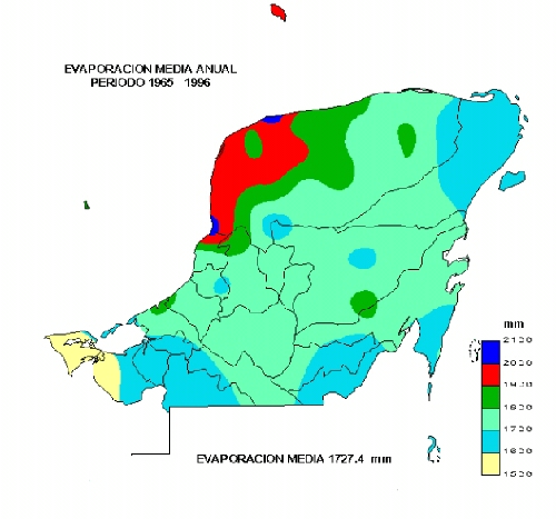 area's in Quintana Roo. The average yearly evaporation per area is shown in