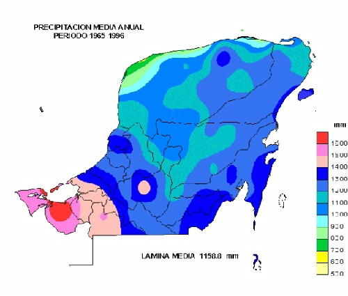 area's in Quintana Roo. The average minimum is approx. 450 mm, The average